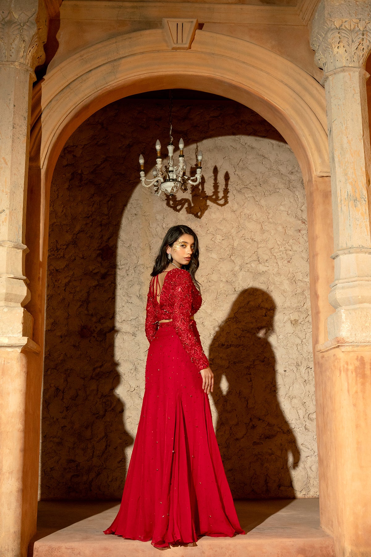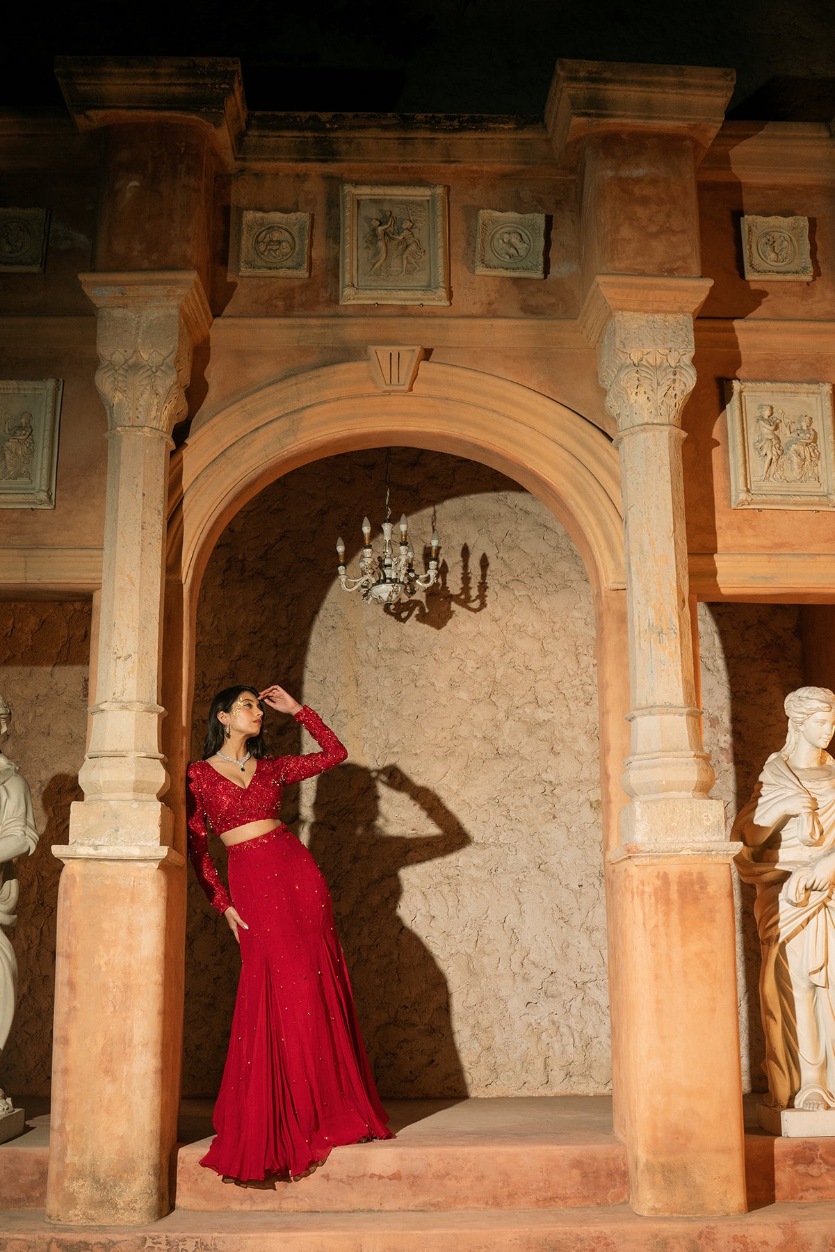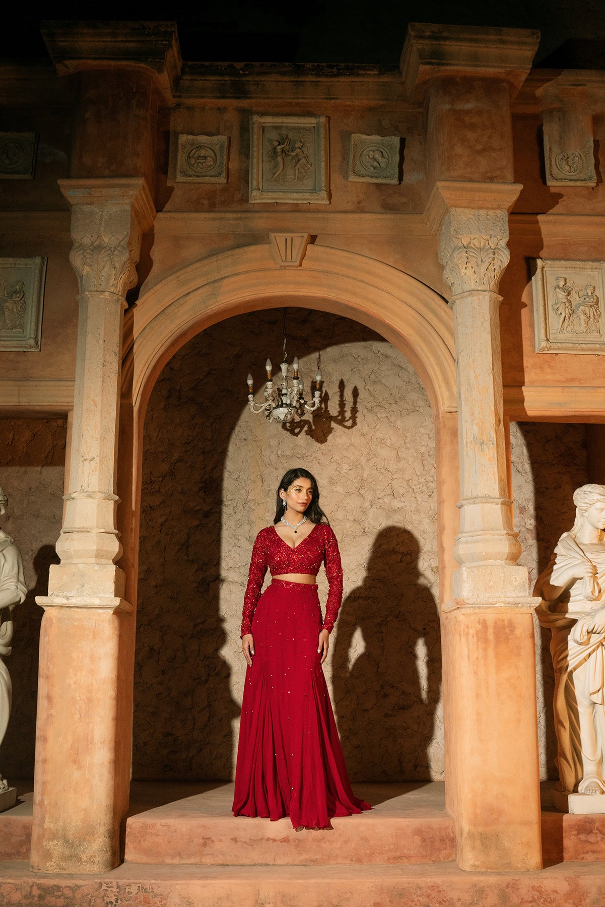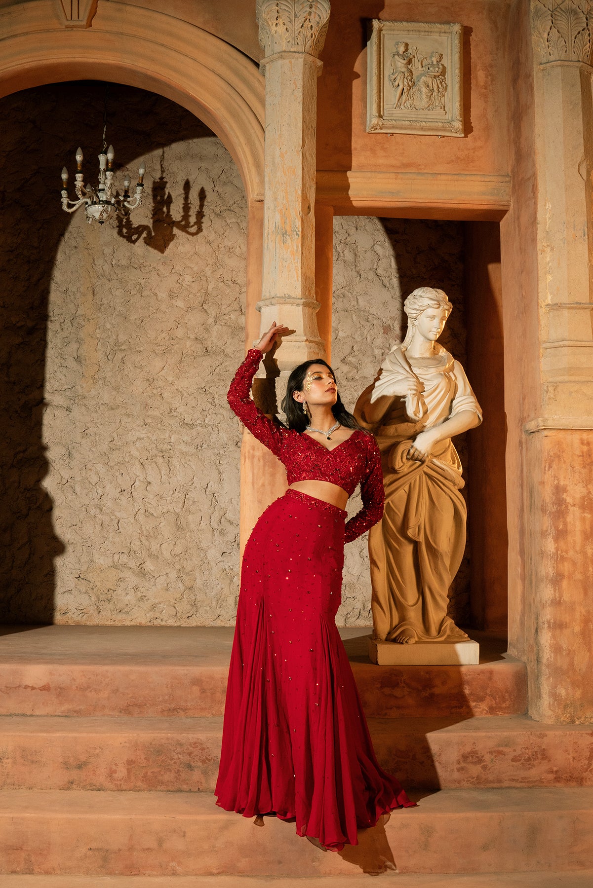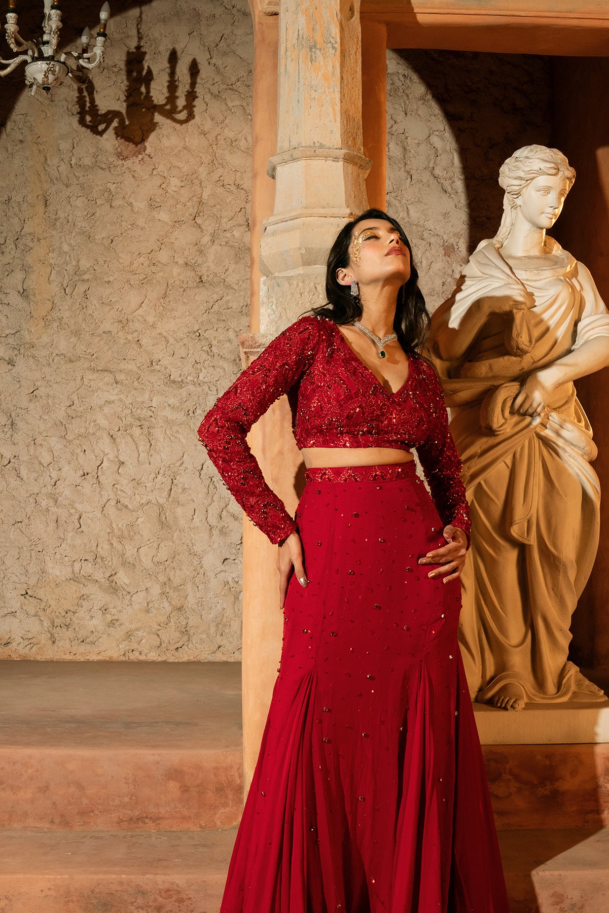 CALISTA SKIRT SET- V-neck blouse and godet panelled skirt set