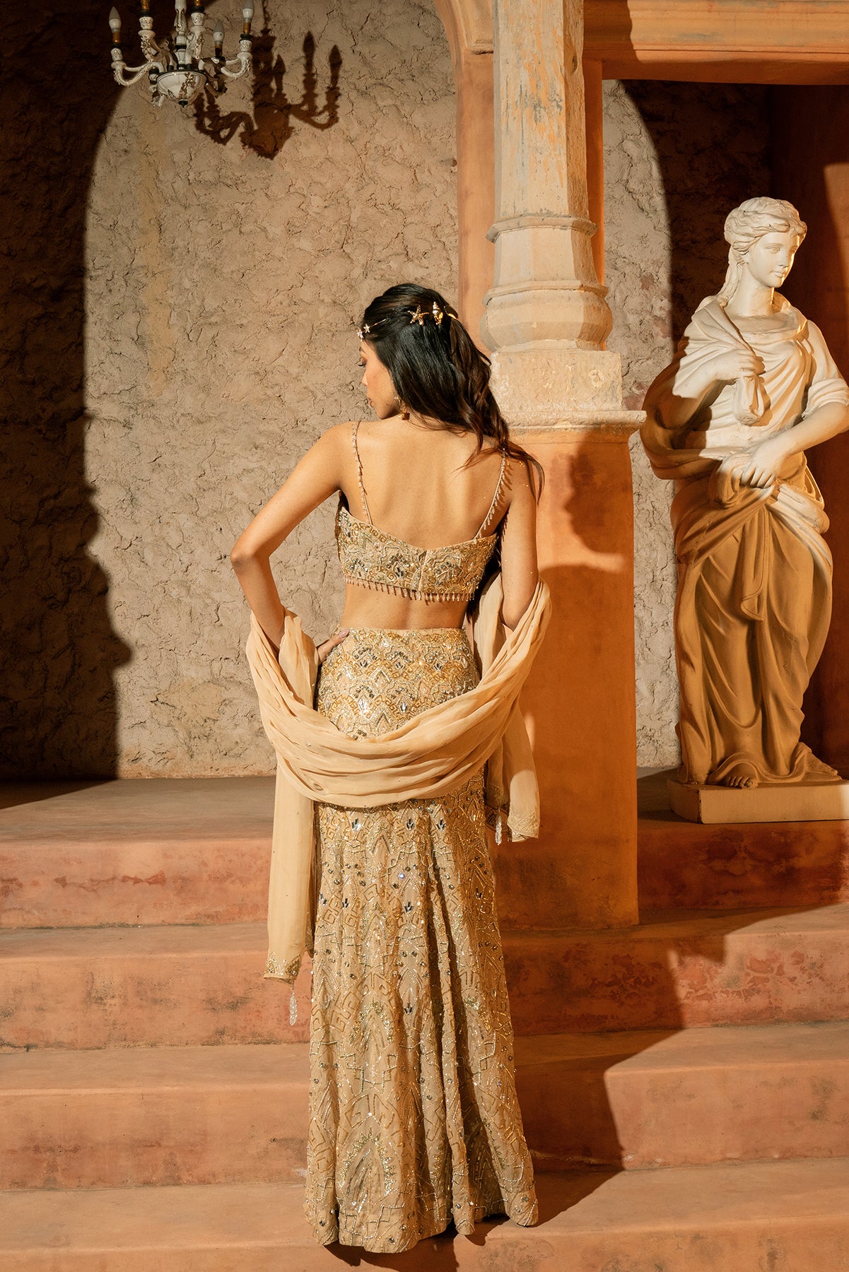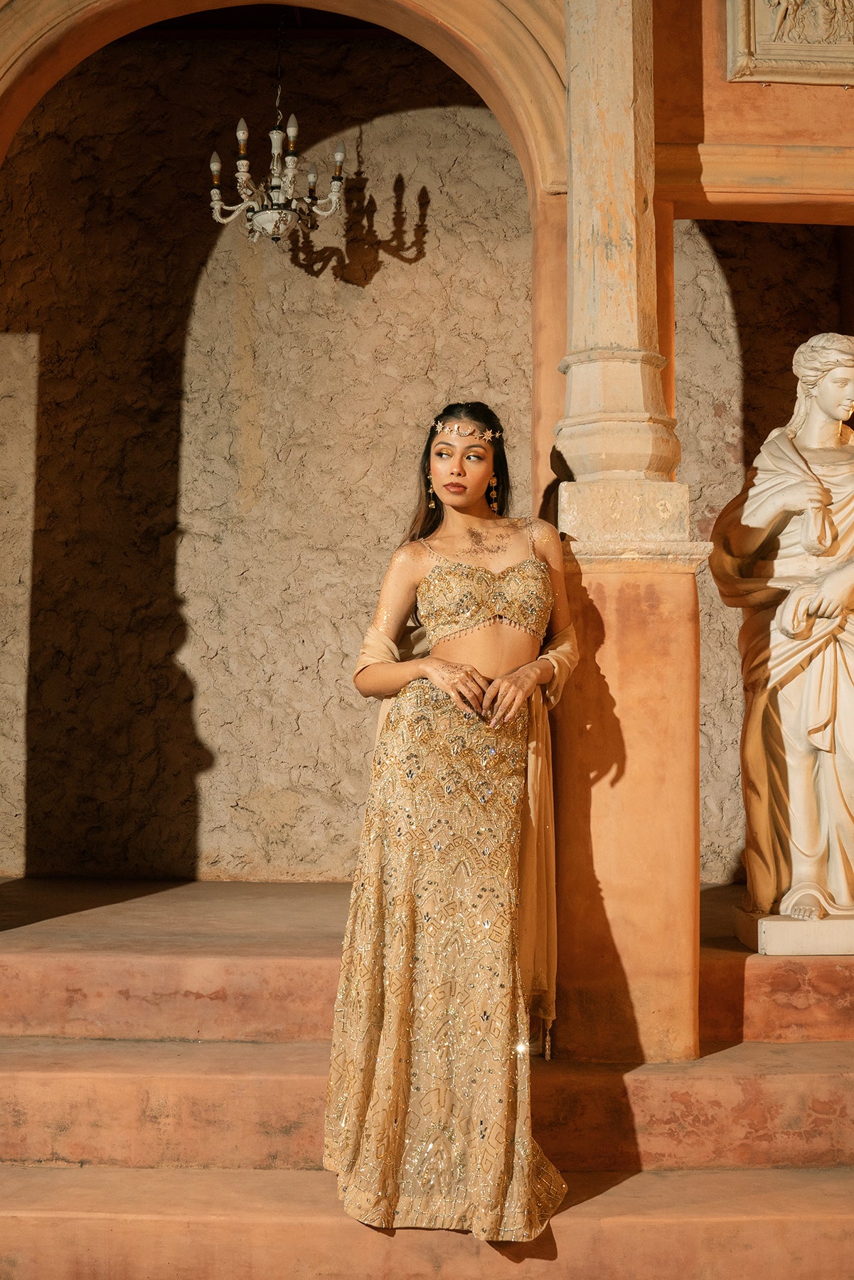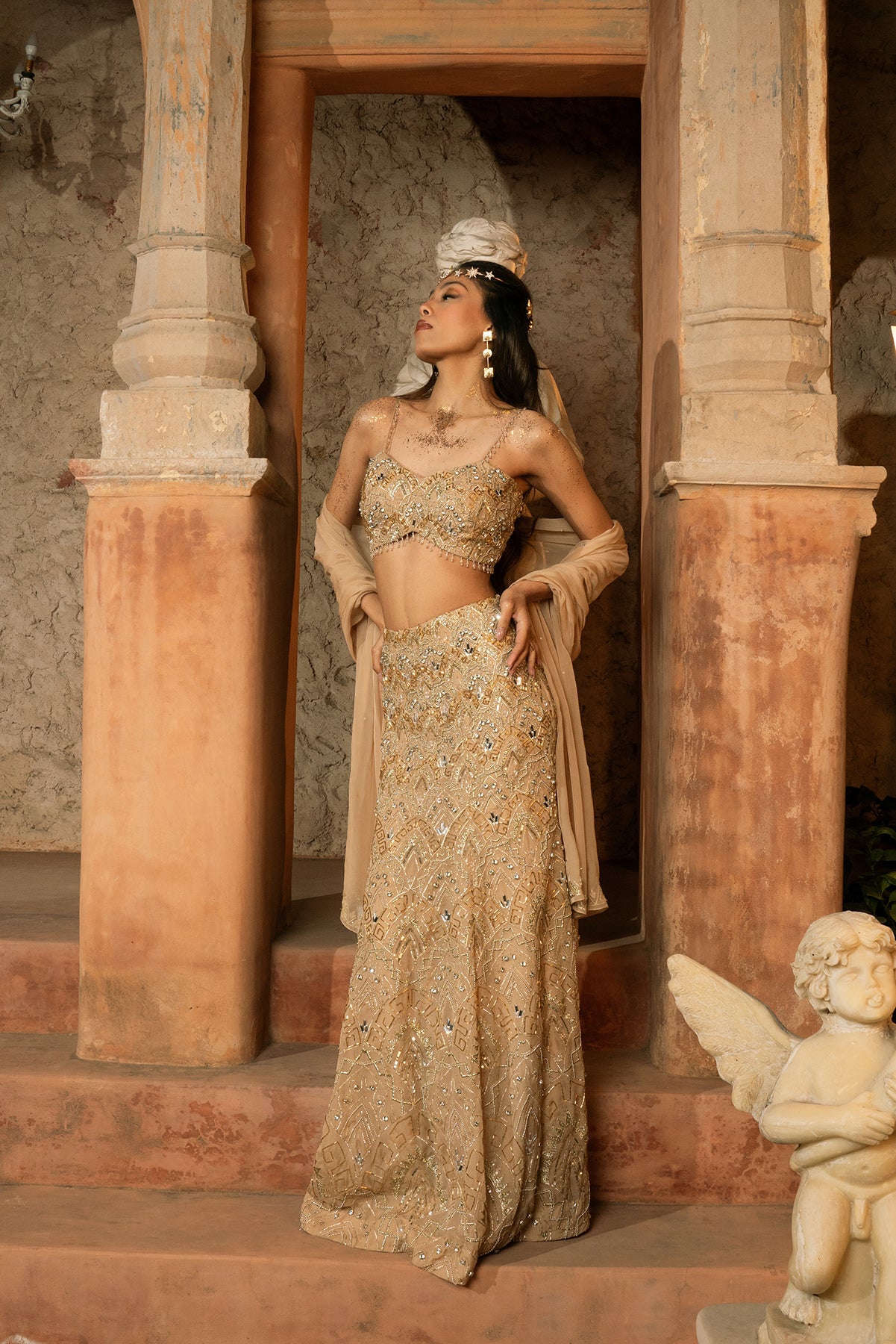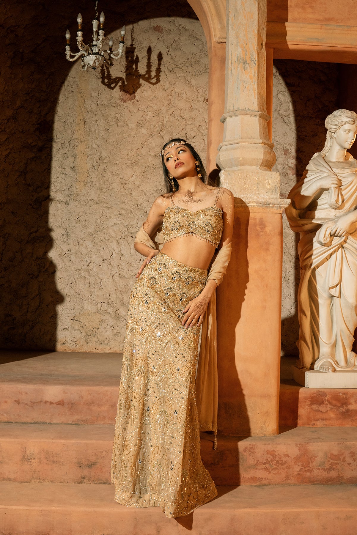 MIDAS SKIRT SET- Embroidered v-hem bustier and skirt with stole