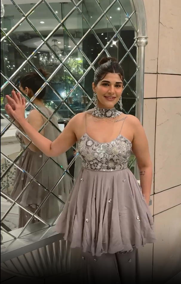 Embroidery Details: Machine Embroidered Floral Embroidery With Mix Media Hand Embroidery And Swaroski Crystal Embellishments