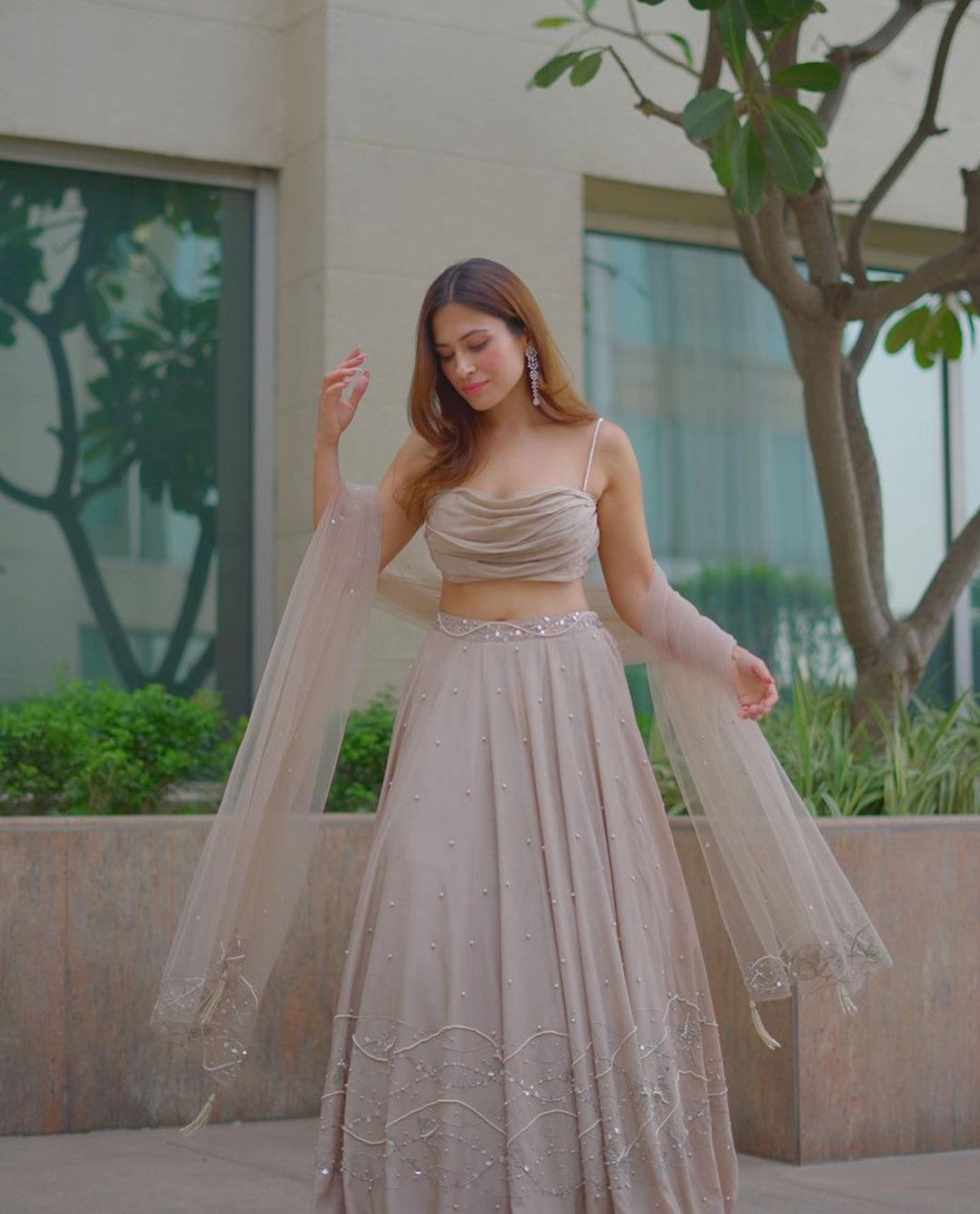 Yashika Khatri in Cowl Top With Embroidered Lehenga And Dupatta