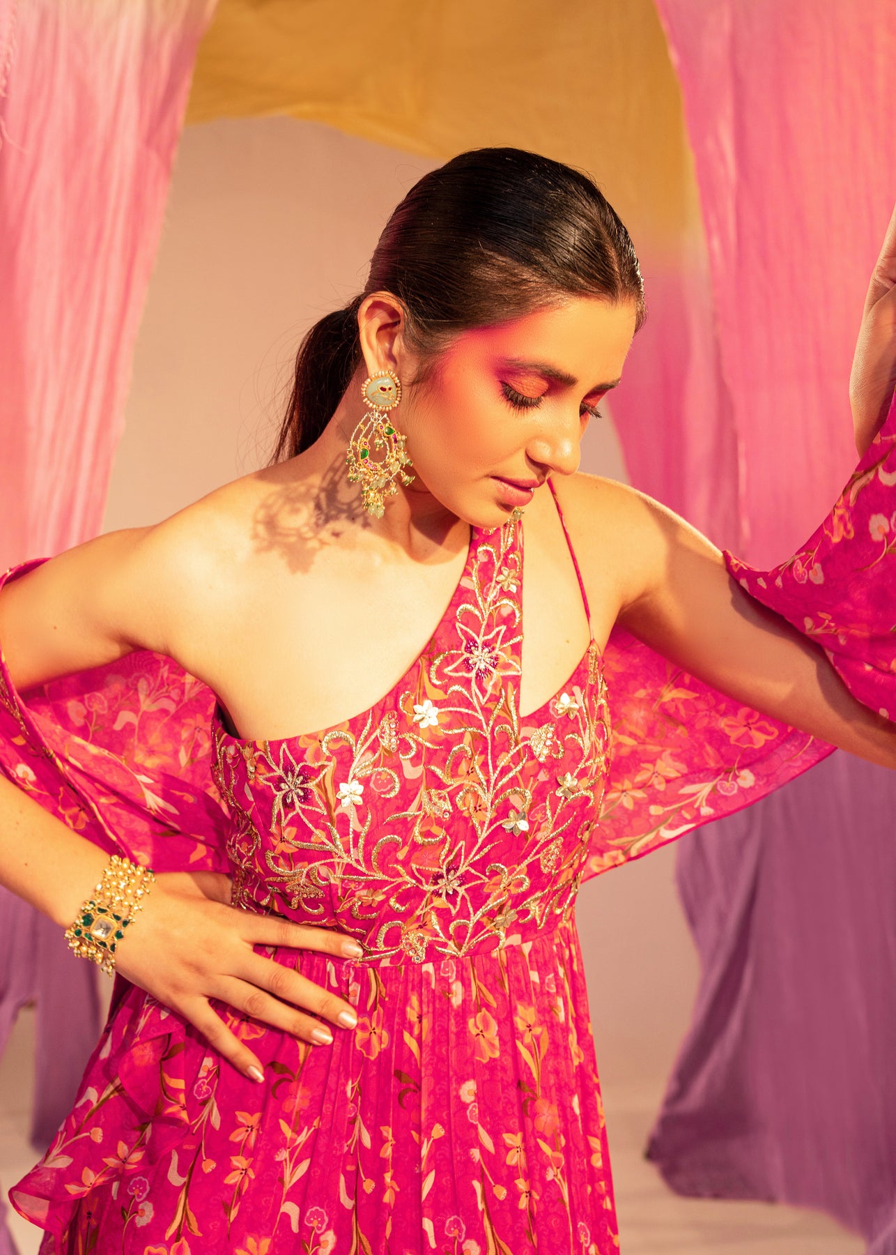 SKU Code- SB-KL-16Fabric- Shantoon, GeorgetteEmbroidery details- Badhla, Crystals, Sequins EmbroideryColour- Rani PinkProduction/Delivery timeline- 3 WeeksNo of Components- Set of 2